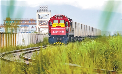 八月二十三日,中老铁路国际货物列车(玉溪—万象)实现双向开行。截至今年七月底,中老铁路自二〇二一年十二月开通以来运输货物超六千四百五十万吨,其中跨境货物...