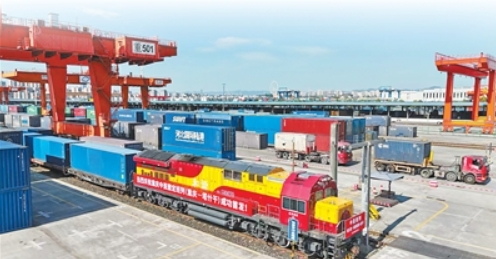 8月24日,重庆团结村中心站一派繁忙景象,一列满载“重庆造”化工产品、汽车零配件的中亚班列即将...
