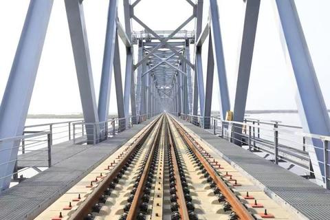新建同江中俄黑龙江铁路大桥位于中国黑龙江省同江市与俄罗斯下列宁斯阔耶市之间,桥梁全长7194米,引桥长4979米,主桥长2215米,其中中方境内主桥长1886米,俄方境内主桥长329米,设计运营时速100公里、年过货能力2100万吨。大桥工程2014年2月开工,2018年10月中方段主体工程完成,2019年7月中方段完成静态验收、动态验收、初步验收和安全评估等全部验收程序。