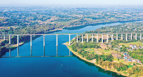 新华每日电讯:潍坊至宿迁高铁沭河特大桥上跨胶新铁路T构梁完...