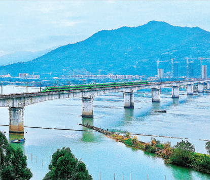 8月28日,G9845次动车组行驶在京港高铁昌九段抚河特大桥上。当日,该列车从南昌东站驶出,标志着昌九高铁南昌东至何家线路所段(昌九高铁先行开通段)开通运营。本...