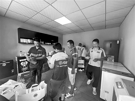 成都高新区新业态劳动者在“中和·蜂巢”职工服务驿站领取清凉礼包。受访者供图